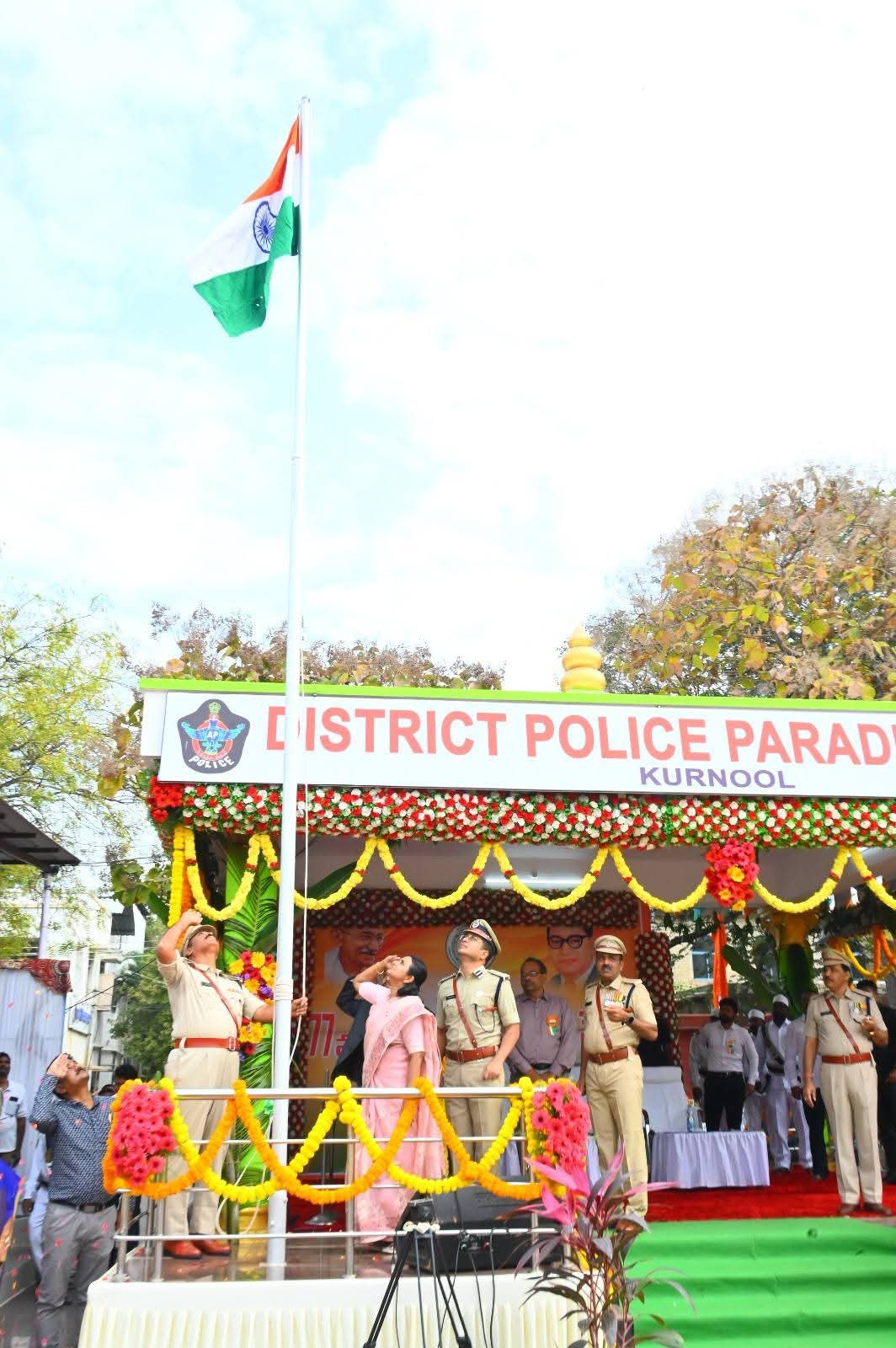 జిల్లా  కలెక్టర్ గారు,  కర్నూలు ఎస్పీ  గారితో కలిసి పెరేడ్ వీక్షణ చేసి, సాయుధ దళాల నుంచి గౌరవ వందనం స్వీకరించారు.