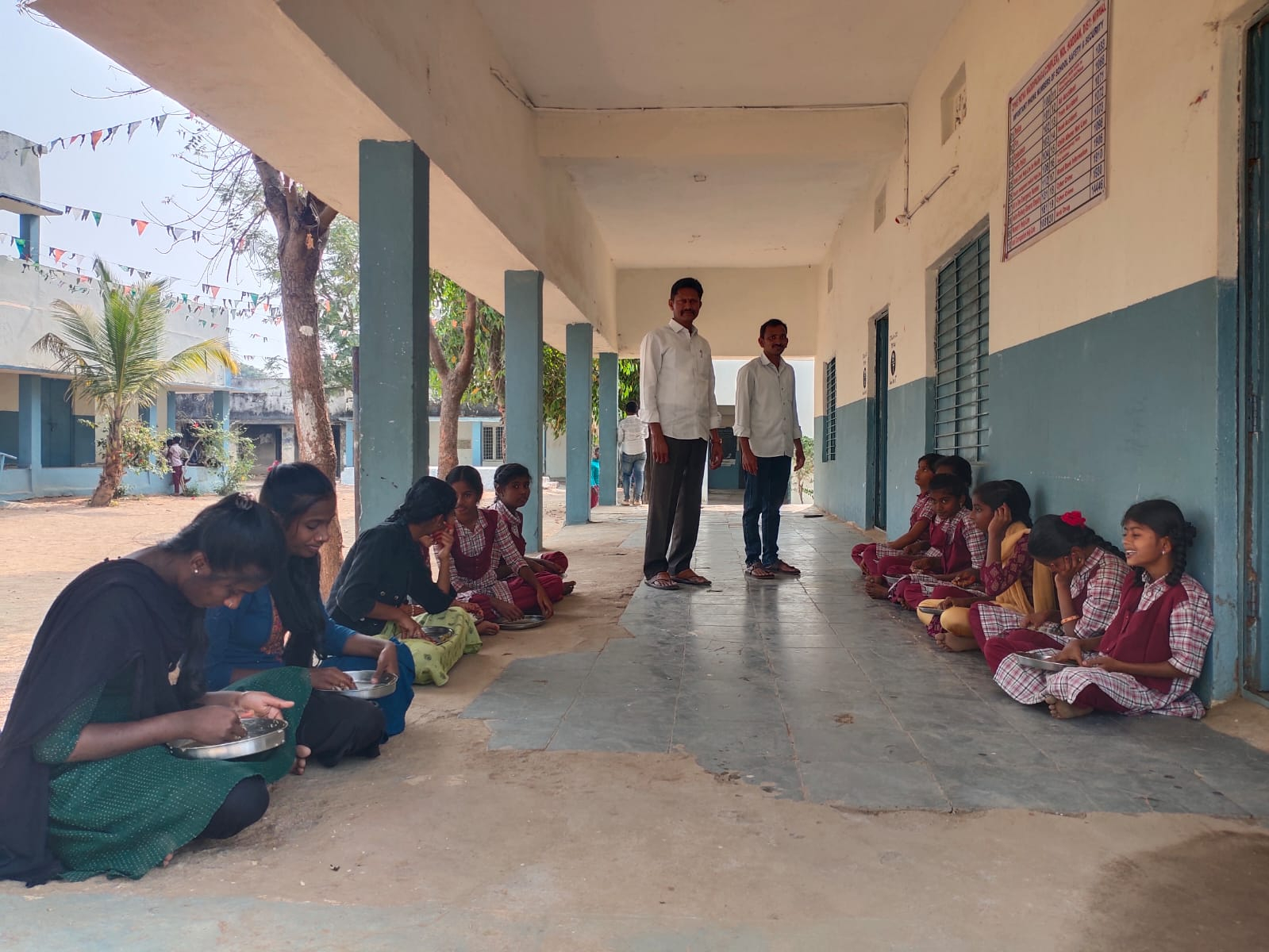 గవర్నమెంట్ పాఠశాల కి వెళ్లి విద్యార్థుల స్థితి గతులను తెలుసుకొని మధ్యాహ్న భోజనం ఎలా ఉంటుంది అని అడిగి తెలుసుకొని సరిగ్గా ఉంటుందా లేదా భోజనం మంచిగా లేకుంటే చెప్పండి అని అడిగి వాళ్ళ విషయాలు తెలుసుకొని విద్యార్థులతో కలిసి తినడం జరిగింది.