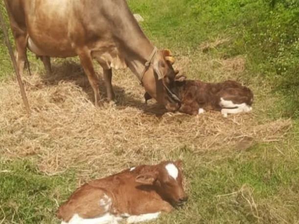 పుంగనూరు: ఓకే ఈతలో రెండు దూడలకు జన్మనిచ్చిన ఆవు.