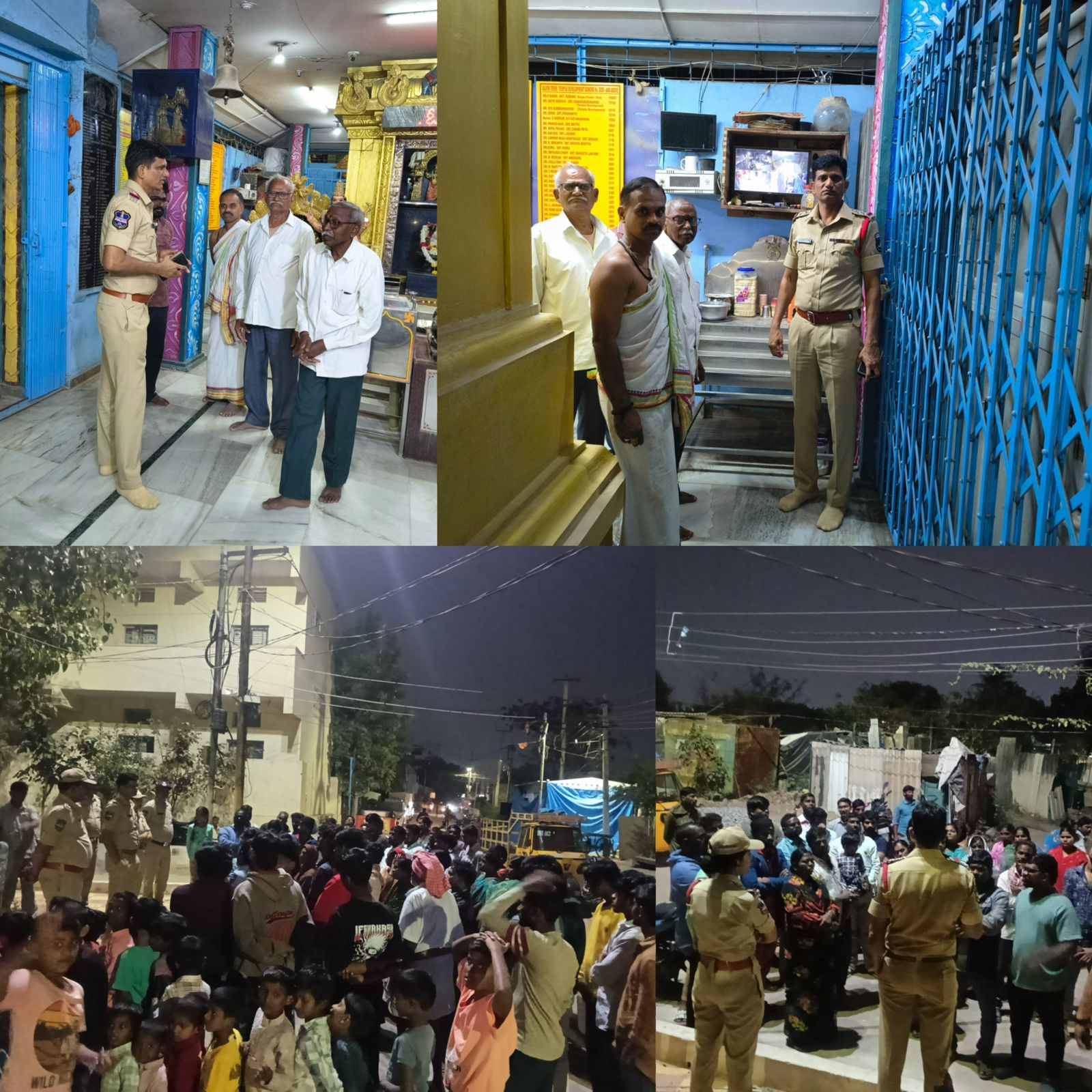 అనంతరం శివ నగరంలోని శివాలయం ఆలయాన్ని సందర్శించిన  ఎస్హెచ్వో  ప్రశాంత్, సెక్టార్ ఎస్సై గీత, ఆలయ భద్రతా చర్యలను సమీక్షించారు. గుడి ప్రాంగణంలో ఏర్పాటుచేసిన సీసీ కెమెరాలు తీరును స్వయంగా తనిఖీ చేశారు.