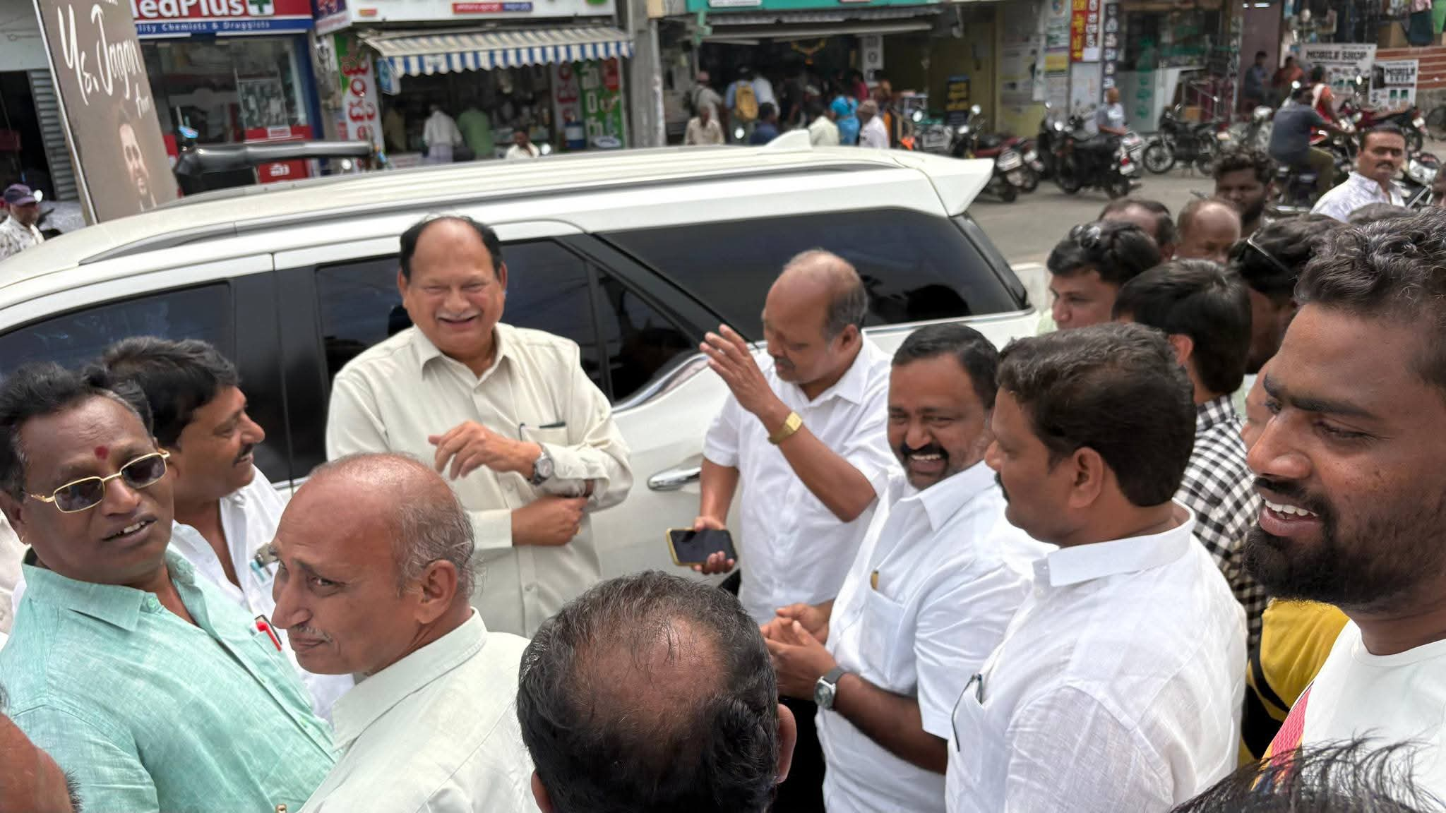 చీరాల మాజీ ఎమ్మెల్యే కరణం బలరాం సోమవారం చీరాల క్లాక్ టవర్ సెంటర్లో సందడి