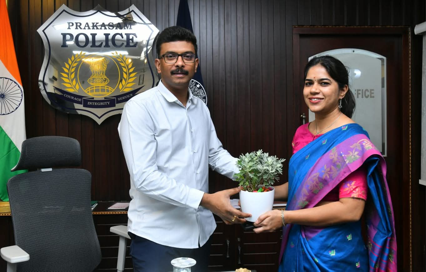 ఒంగోలు జిల్లా పోలీస్ కార్యాలయంలో ప్రకాశం జిల్లా ఎస్పీ శ్రీ వి. హర్షవర్ధన్ రాజు, ఐపీఎస్., గారిని నూతనంగా బాధ్యతలు స్వీకరించిన జాయింట్ కలెక్టర్ శ్రీమతి కల్పనా కుమారి గారు
