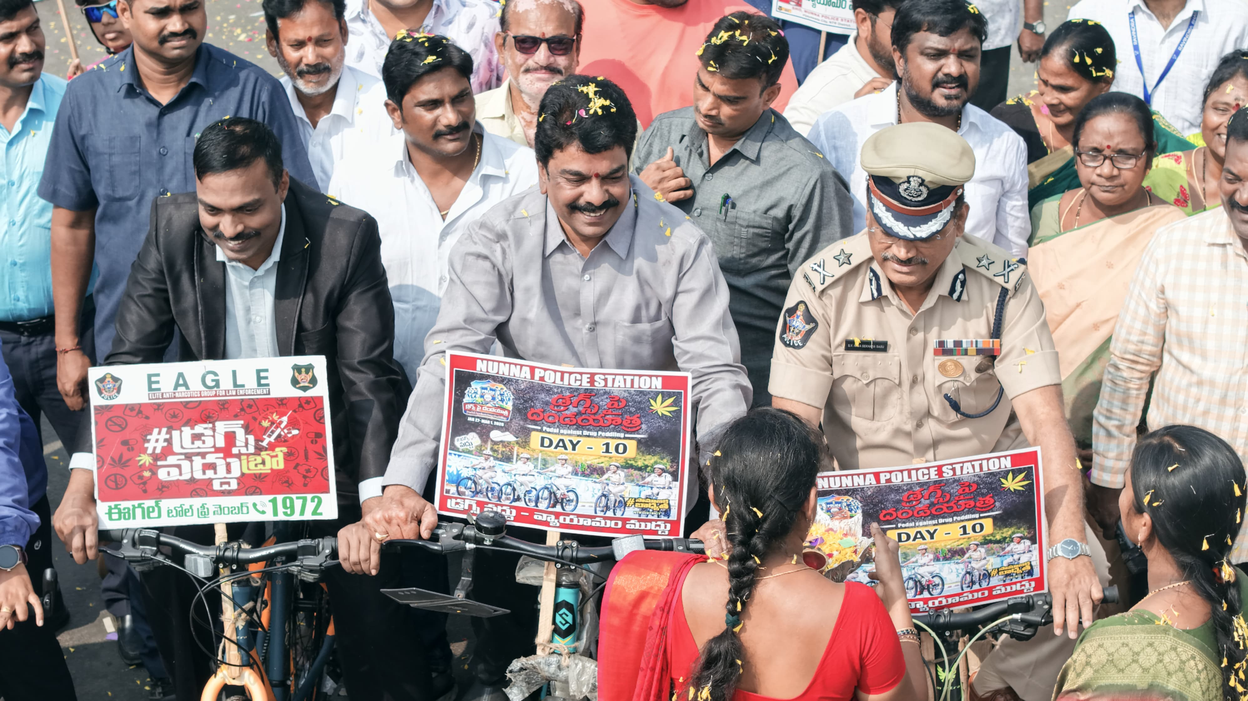 🔴 *పదవ రోజు అయిన ఈ రోజు నున్న నగర్ పోలీస్ స్టేషన్ పరిధిలో నున్న వాంబే కాలని జి బ్లాక్ వద్ద నుండి వద్ద జీవితాన్ని ప్రేమించు డ్రగ్స్ కు దూరంగా ఉండు అనే నినాదంతో సుమారు 200 విద్యార్థులు సైకిల్స్ తొక్కుతూ సైకిల్ యాత్ర కార్యక్రమం ప్రారంభమైనది.*