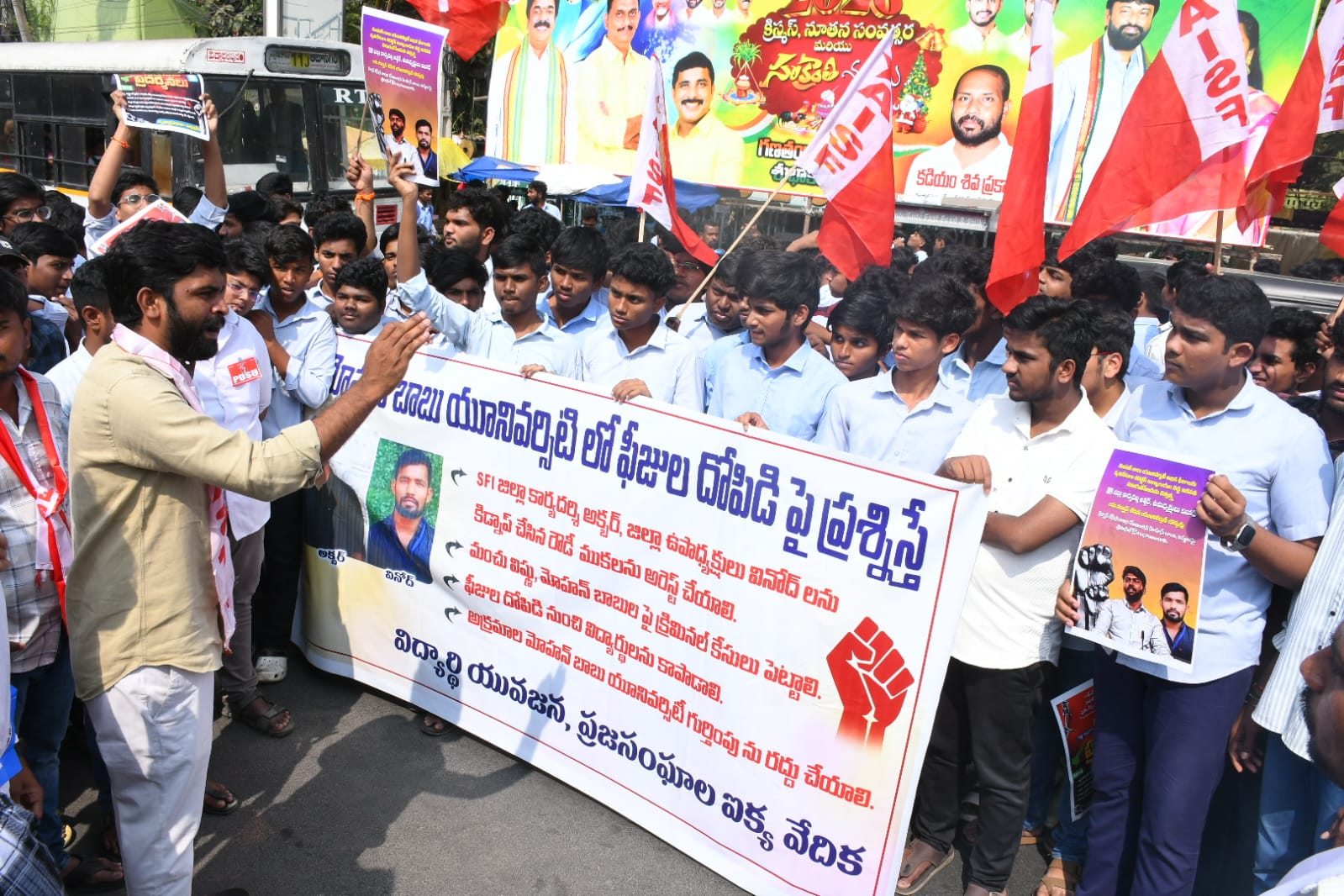 విద్యార్థి యువజన సంఘాల ఐక్యవేదిక ఆధ్వర్యంలో ఎస్ఎఫ్ఐ జిల్లా కార్యదర్శి అక్బర్, వినోద్ లను కిడ్నాప్ చేసిన నిందితులను కఠినంగా శిక్షించాలని, తిరుపతి మోహన్ బాబు యూనివర్సిటీ పై కఠిన చర్యలు తీసుకోవాలని విజయవాడ బిఎస్ఎన్ఎల్ సిగ్నల్ నుంచి ఎస్ ఆర్ ఆర్ కళాశాల వరకు భారీ ర్యాలీ నిర్వహించడం జరిగింది.