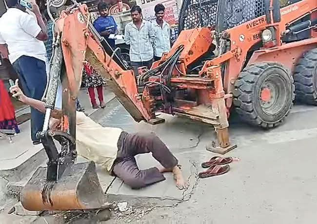 ఒక దశలో యజమాని రోడ్డుపై పడుకొని పొక్లెయిన్ను అడ్డుకున్నాడు..