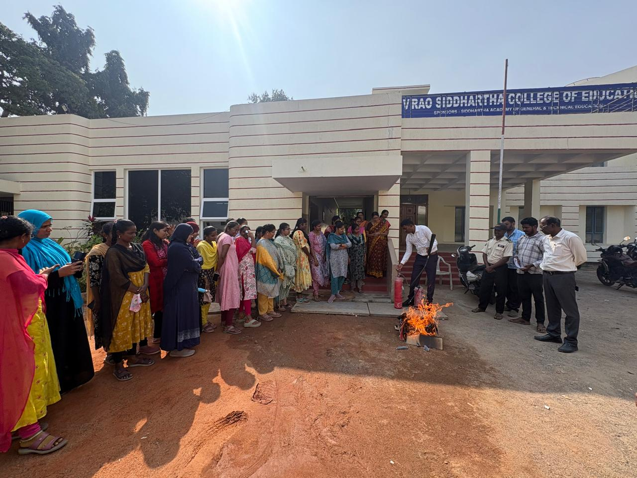 వై వి రావు సిద్ధార్థ బిఇడి కళాశాల, చలసాని నగర్ లో క్షేత్రస్థాయిలో పరిశీలించి వారికి అగ్నిప్రమాదం జరగకుండా తీసుకోవాల్సిన నివారణ చర్యల సామాగ్రి ఉందా లేదా అని క్షేత్రస్థాయిలో పరిశీలించారు. వాటి వినియోగం తెలుసా లేదా అని అడిగి తెలుసుకున్నారు. అగ్ని ప్రమాదం జరగకుండా తీసుకోవాల్సిన నివారణ జాగ్రత్తలపై వారికి అవగాహన కల్పించడమే కాకుండా వారిచే వారి పరికరాలను ఎలా ఉపయోగించాలో శిక్షణ ఇచ్చారు.