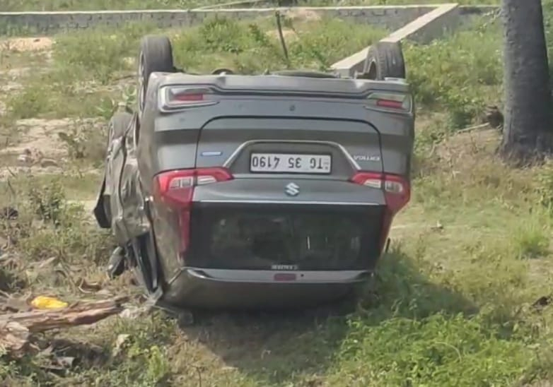 చీరాల: చీరాల మండలం జాతీయ రహదారి–216పై తోటవారిపాలెం సమీపంలో తెల్లవారుజామున కారు ప్రమాదం చోటుచేసుకుంది. అడ్డంగా ఒక్కసారిగా అడ్డంకి రావడంతో డ్రైవర్ హఠాత్తుగా బ్రేక్ వేయగా వాహనం అదుపు తప్పి రహదారి పక్కనున్న పొలాల్లోకి దూసుకెళ్లి పల్టీలు కొట్టింది.