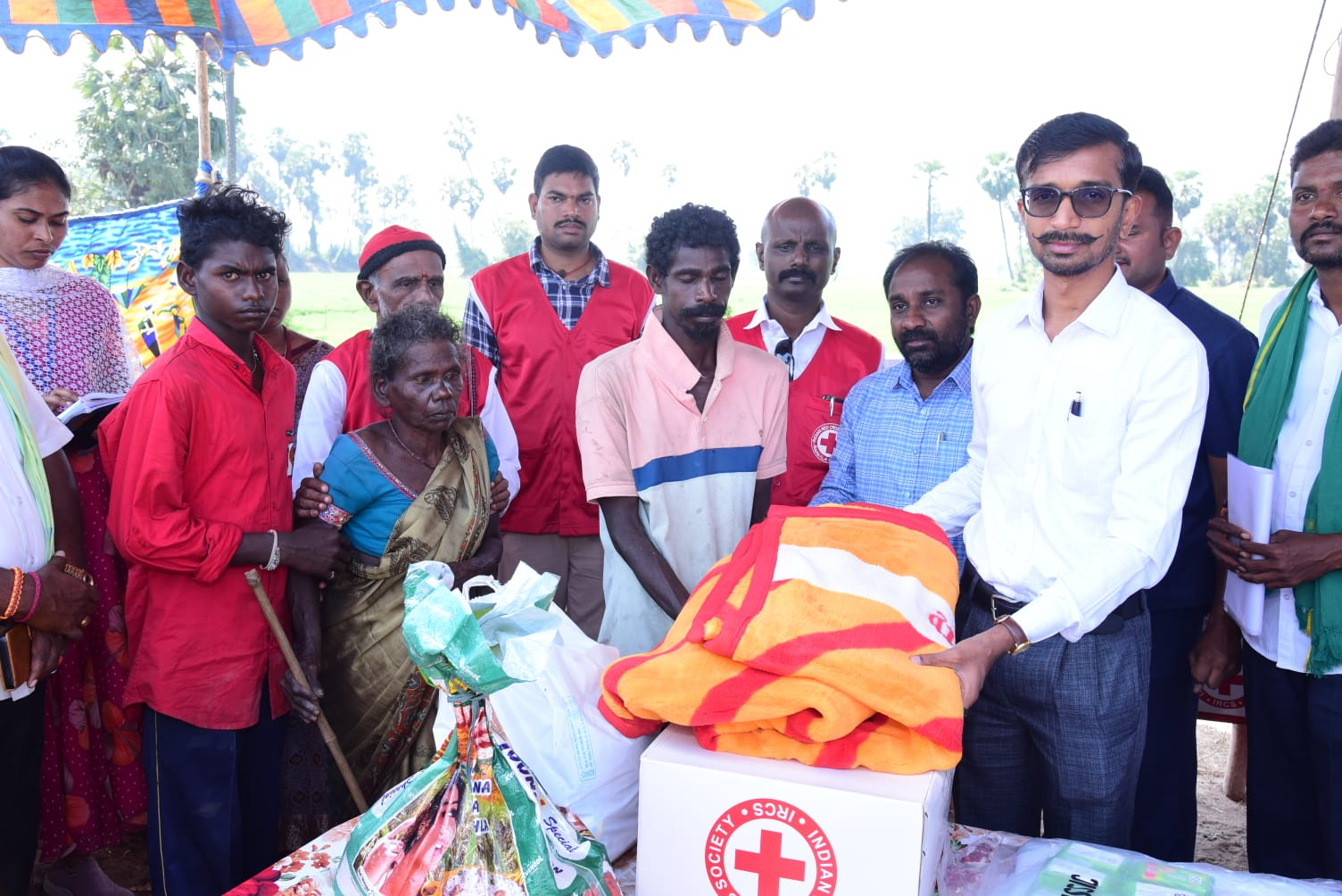 10 యానాది కుటుంబాలకు రెడ్ క్రాస్ సంస్థ ద్వారా నిత్యవసర సరుకులు, దుస్తులు, ఒక బస్తా బియ్యం, కూరగాయలు, కిచెన్ కిట్లు, దుప్పట్లు, రగ్గులు, టార్పాలిన్ పట్టలను కలెక్టర్ చేతుల మీదుగా పంపిణీ చేశారు.