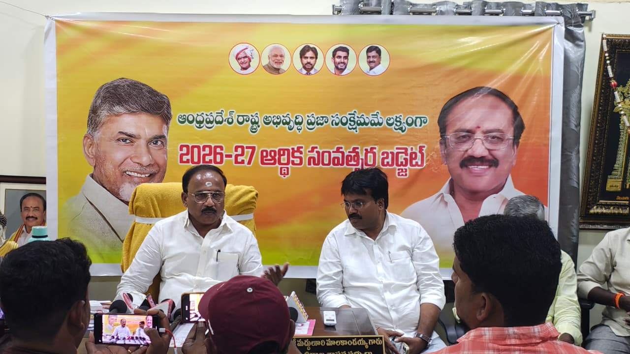 రాష్ట్ర బడ్జెట్ పట్ల చీరాల ఎమ్మెల్యే MM కొండయ్య హర్షం వ్యక్తం చేశారు.రాష్ట్ర పునర్నిర్మాణం, అభివృద్ది,సంక్షేమానికి ఊతమిచ్చేలా బడ్జెట్ కేటాయింపులు ఉన్నాయన్నారు.స్థానిక బైపాస్ రోడ్డులోని తెదేపా పార్టీ కార్యాలయంలో ఆదివారం ఏర్పాటు చేసిన విలేకరుల సమావేశంలో ఎమ్మెల్యే MMకొండయ్య మాట్లాడేరు. ఎన్నికల మేనిఫెస్టో హామీల అమలు లక్ష్యంగా బడ్జెట్ కేటాయింపులు ప్రభుత్వ చిత్తశుద్ధికి అద్దం పడుతుందన్నారు.తల్లికి వందనం,అన్నదాత సుఖీభవ,పింఛన్లకు బడ్జెట్ కేటాయింపులు అభినందనీయమని కొనియాడారు.గతంలో వైసీపీ ప్రభుత్వం సంక్షేమానికి నిధులు కేటాయించి,ఇతర అవసరాలకు మళ్లించి బడుగు బలహీనర్గాలను దగా చేశాయని మండిపడ్డిన ఎమ్మెల్యే కొండయ్య ,,, నేటి బడ్జెట్లో సీఎం చంద్రబాబు నేతృత్యంలోని కూటమి ప్రభుత్వం ప్రధానంగా బడుగు బలహీనర్గాల సంక్షేమానికి అధిక ప్రాధాన్యం ఇవ్వడం సంతోషంగా ఉందన్నారు.ఇక ఇదే క్రమంలో బీసీల కోసం బడ్జెట్లో చేసిన కేటాయింపులు కూటమి ప్రభుత్వం బీసీలకు ఏ స్థాయిలో ప్రాధాన్యం ఇస్తుందో మరోసారి నిరూపించారని తెలిపారు. బీసీ సంక్షేమానికి రూ.47,456 కోట్లు, ఆదరణ పథకం కోసం రూ.1000 కోట్లు కేటాయించడం శుభపరిణామమన్నారు.గత ఐదేళ్లలో వైసీపీ ప్రభుత్వం బీసీ సంక్షేమాన్ని గాలికి వదిలేశారని,చేతివృత్తుల వారికి అండగా నిలిచే ఆదరణ పథకాన్ని నిలిపివేసి బీసీలను అన్యాయం చేశారని వైసీపీ తీరును దుయ్యబట్టిన ఎమ్మెల్యే కొండయ్య ,, నేడు మళ్ళీ ఆదరణ పథకానికి బడ్జెట్ కేటాయించి, పథకాన్ని పునఃప్రారంభించడం సంతోషంగా ఉందని తెలిపారు. బీసీల అభివృద్ధికి దోహదం చేసేలా బడ్జెట్ కేటాయింపుల్లో ప్రాధాన్యం ఇచ్చిన ముఖ్యమంత్రికి చీరాల నియెజకవర్గంలోని బీసీలందరి తరపున ప్రత్యేకంగా ధన్యవాదాలు తెలియజేశారు. పోలవరం, అమరావతి వంటి అభివృద్ది, గృహ నిర్మాణం, రోడ్ల నిర్మాణాలకు బడ్జెట్ కేటాయింపులు అభినందనీయమన్నారు.ప్రజల అభివృద్ది సంక్షేమమే లక్ష్యంగా చేపట్టిన ఈ బడ్జెట్ రాష్ట్రాన్ని తద్వారా చీరాల ప్రాంతాన్ని విజన్ 2047లక్ష్యం వైపు నడిపించడంలో కీలక పాత్ర పోషిస్తుందన ఆశాభావాన్ని వ్యక్తం చేశారు.