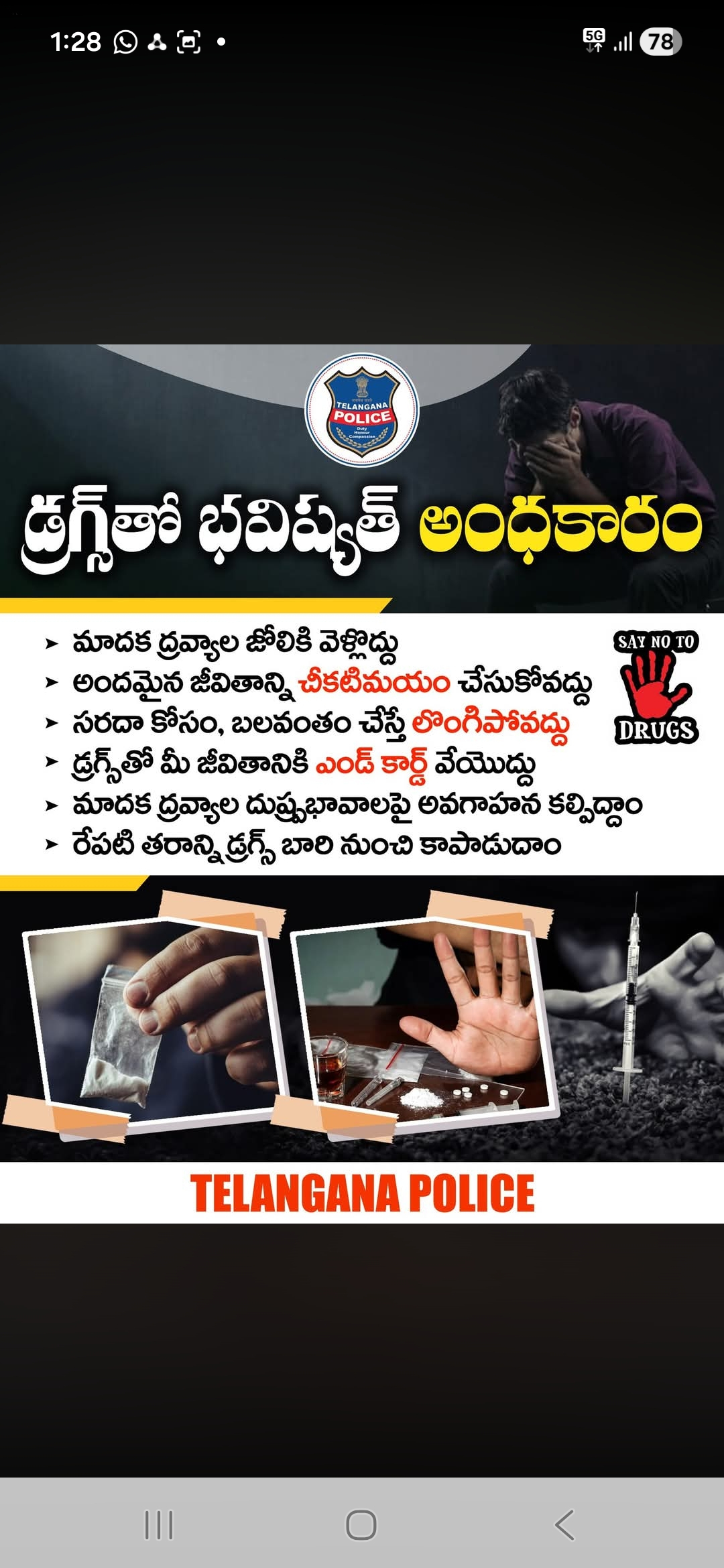 శక్తి టీం ఆధ్వర్యంలో అవగాహన సదస్సుబాపట్ల జిల్లా రామాపురంలో శక్తి టీమ్ తో స్టూడెంట్స్, బాపట్ల జిల్లా చీరాల సబ్ డివిజన్ రామపురం నందు బాపట్ల ఎస్పీ బి ఉమామహేశ్వర్ ఆదేశాల మేరకు చీరాల డి.ఎస్.పి మోయిన్ ఆధ్వర్యంలో చీరాల సబ్ డివిజన్ శక్తి టీం సభ్యురాలు సిహెచ్ సునీత, రామాపురం నందు స్టూడెంట్స్ కి శక్తి యాప్ గురించి అలాగే ఆ యాప్ ఆపద సమయంలో ఏ విధంగా ఉపయోగపడుతుందో తెలియపరిచారు.ప్రస్తుతం సమాజంలో జరుగుతున్నటువంటి సైబర్ క్రైమ్స్ గురించి మరియు...0 Comments 0 Shares 102 Views 0 Reviews